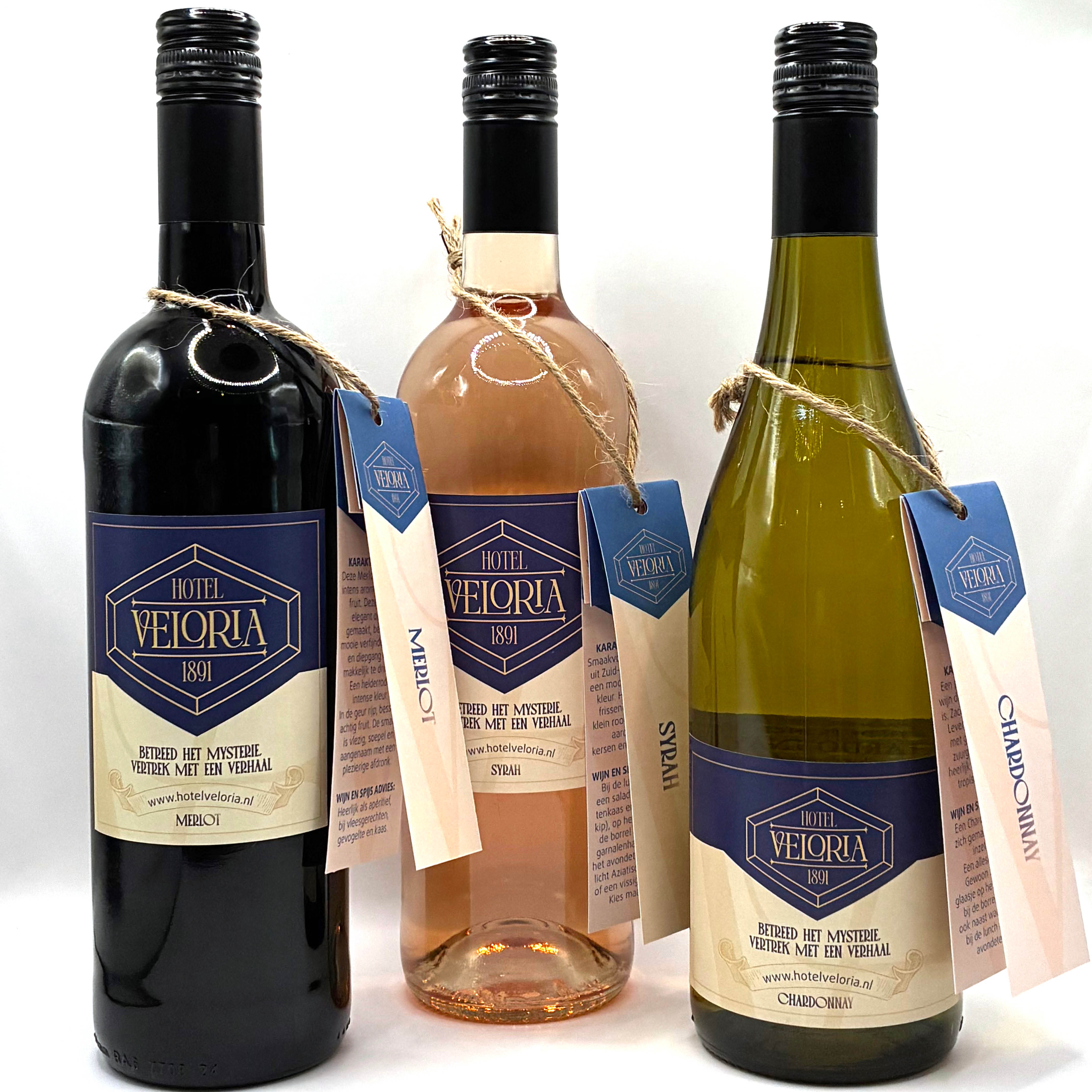 Combideal: 3 flessen wijn inclusief een vouchercode van €15,- te besteden bij Hotel Veloria.