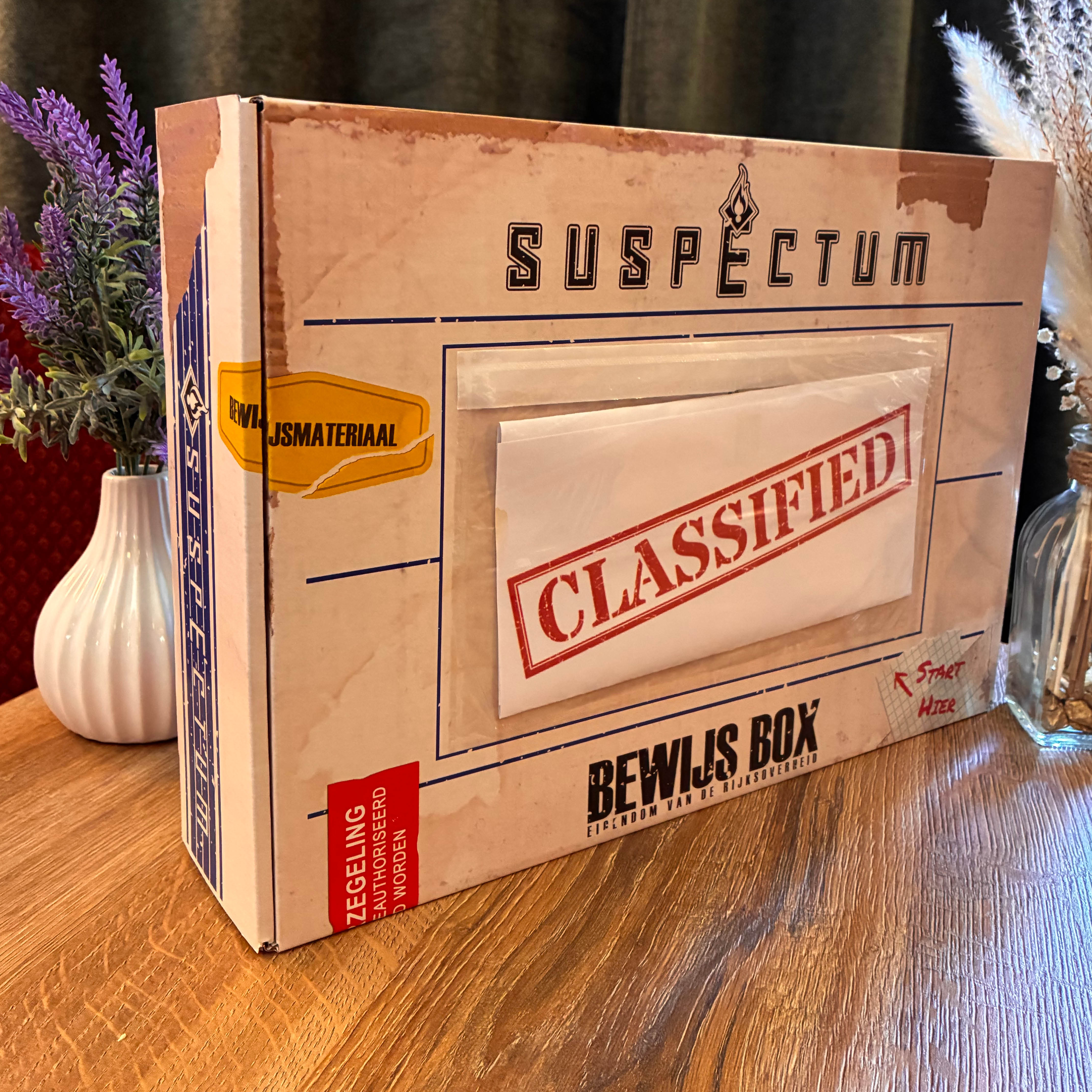 In Suspectum MMI krijg je een uniek moorddossier thuis gestuurd. Duik samen met je vrienden in deze 20 jaar oude cold case. Bekijk het bewijsmateriaal, ga op onderzoek uit en wijs de juiste dader aan!