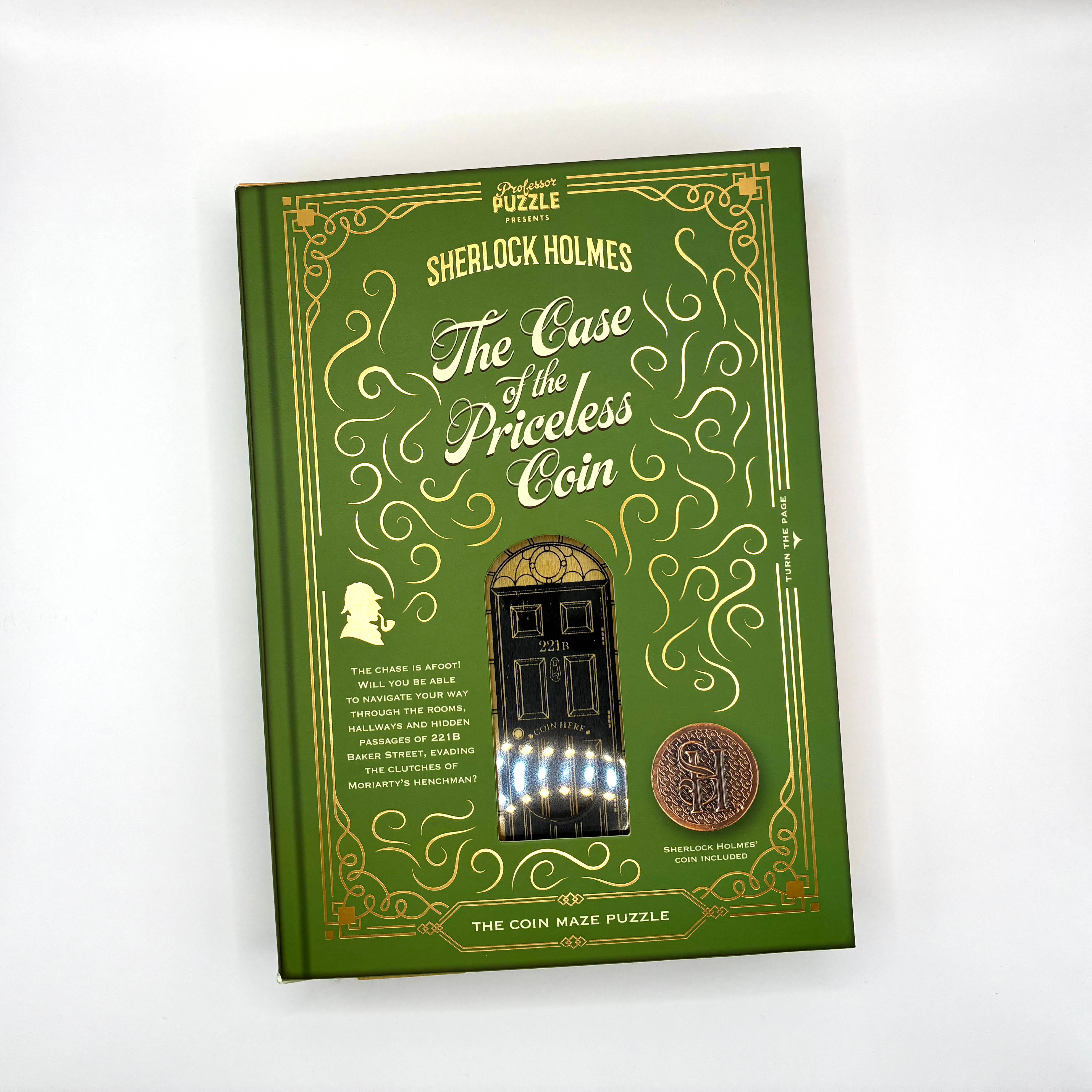 Sherlock Holmes strides through the hushed London streets carrying a priceless coin, bestowed on him in gratitude by the British Treasury. Holmes is suddenly alert to being followed and concludes that one of Moriarty’s henchmen has been sent to obtain the coin. If he can lure the villain back to 221B Baker Street, he can lead him through a game of cat and mouse before escaping and alerting Scotland Yard to arrest his trapped pursuer.